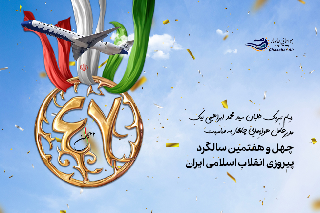 ۲۲ بهمنماه، سالروز پیروزی انقلاب اسلامی ایران، یادآور نقش تعیینکننده ملت ایران در شکلگیری نظام جمهوری اسلامی و تأکید بر اصول استقلال، وحدت و انسجام ملی است. این روز، نقطه عطفی در تاریخ معاصر کشور و نماد همبستگی و مشارکت عمومی در تعیین مسیر آینده ایران به شمار میرود.شرکت هواپیمایی چابهار، در چارچوب مأموریتها و وظایف محوله، همواره بر رعایت الزامات ایمنی پرواز، ارتقای سطح کیفی خدمات، انطباق با مقررات صنعت هوانوردی کشور و ایفای نقش مؤثر در شبکه حملونقل هوایی تأکید داشته و خدمترسانی مطلوب و مستمر به مردم شریف ایران را از اولویتهای اصلی خود میداند.اینجانب ضمن گرامیداشت سالروز پیروزی انقلاب اسلامی، این مناسبت ملی را به ملت شریف ایران، خانواده بزرگ صنعت هوانوردی کشور و کارکنان متعهد شرکت هواپیمایی چابهار تبریک عرض نموده و توفیق همگان را در انجام شایسته وظایف محوله و خدمت به کشور مسئلت مینمایم.